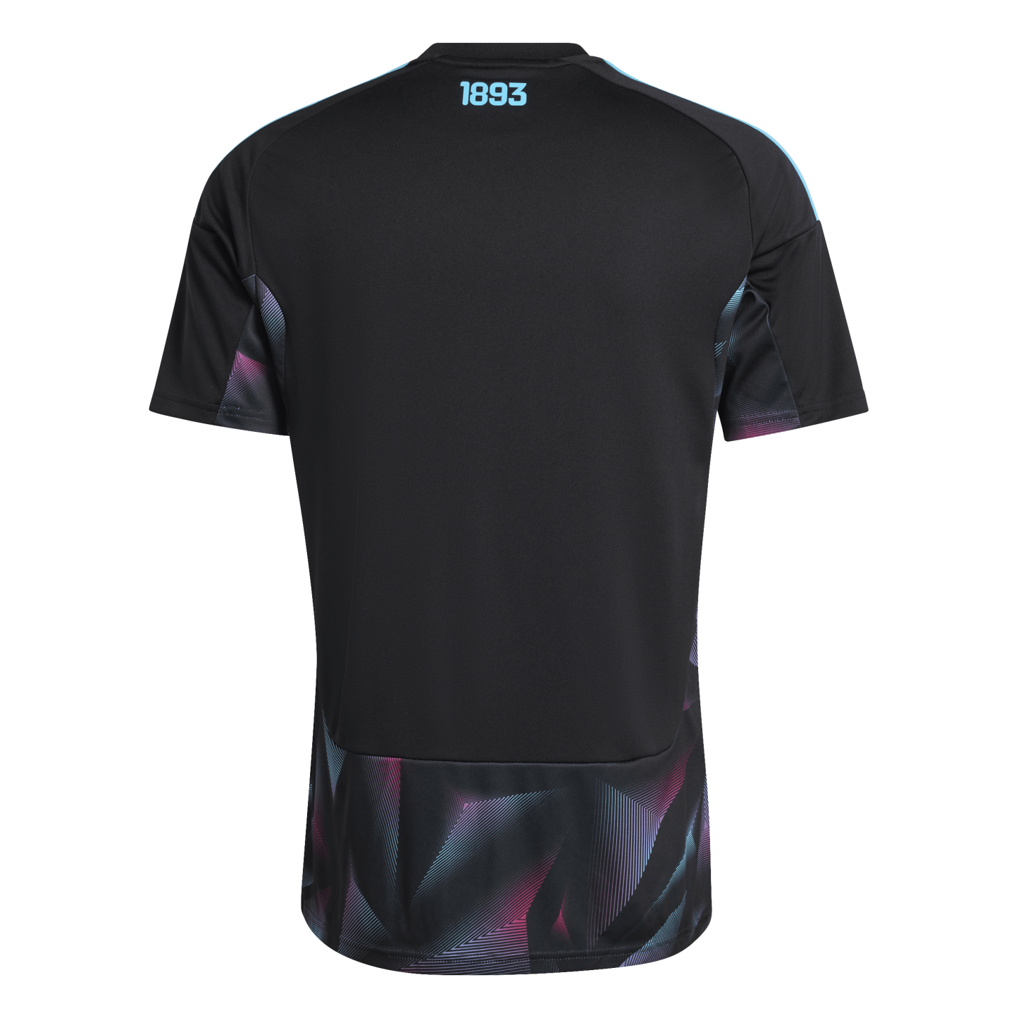 The embroidered brand logo and club crest on the jersey showcase its exquisite craftsmanship, adding an authentic Argentine touch. The striking design highlights Adidas's signature characteristics.
