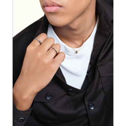 The Quatre Classique wedding band combines two golds and two emblematic codes of the collection in unison: yellow and pink gold, Clou de Paris and Godron. The piece is accented with brown PVD for a contemporary touch. A wedding band with a strong character that goes perfectly with other rings in the collection and with every aspect of your style.