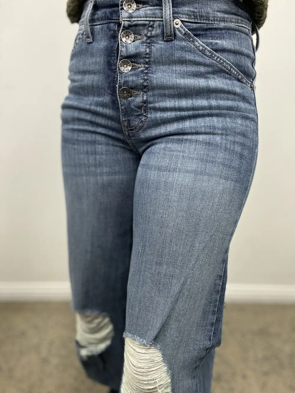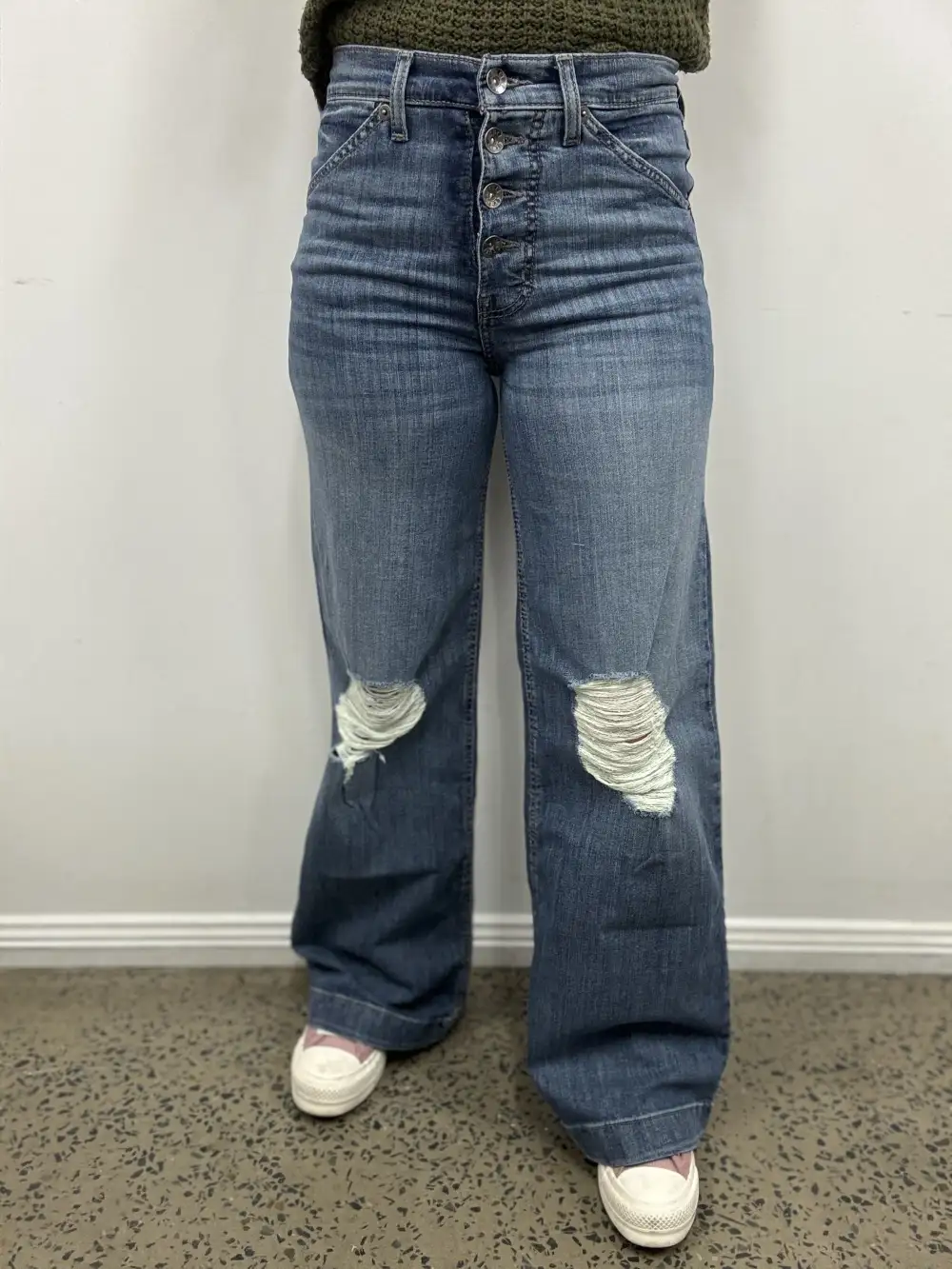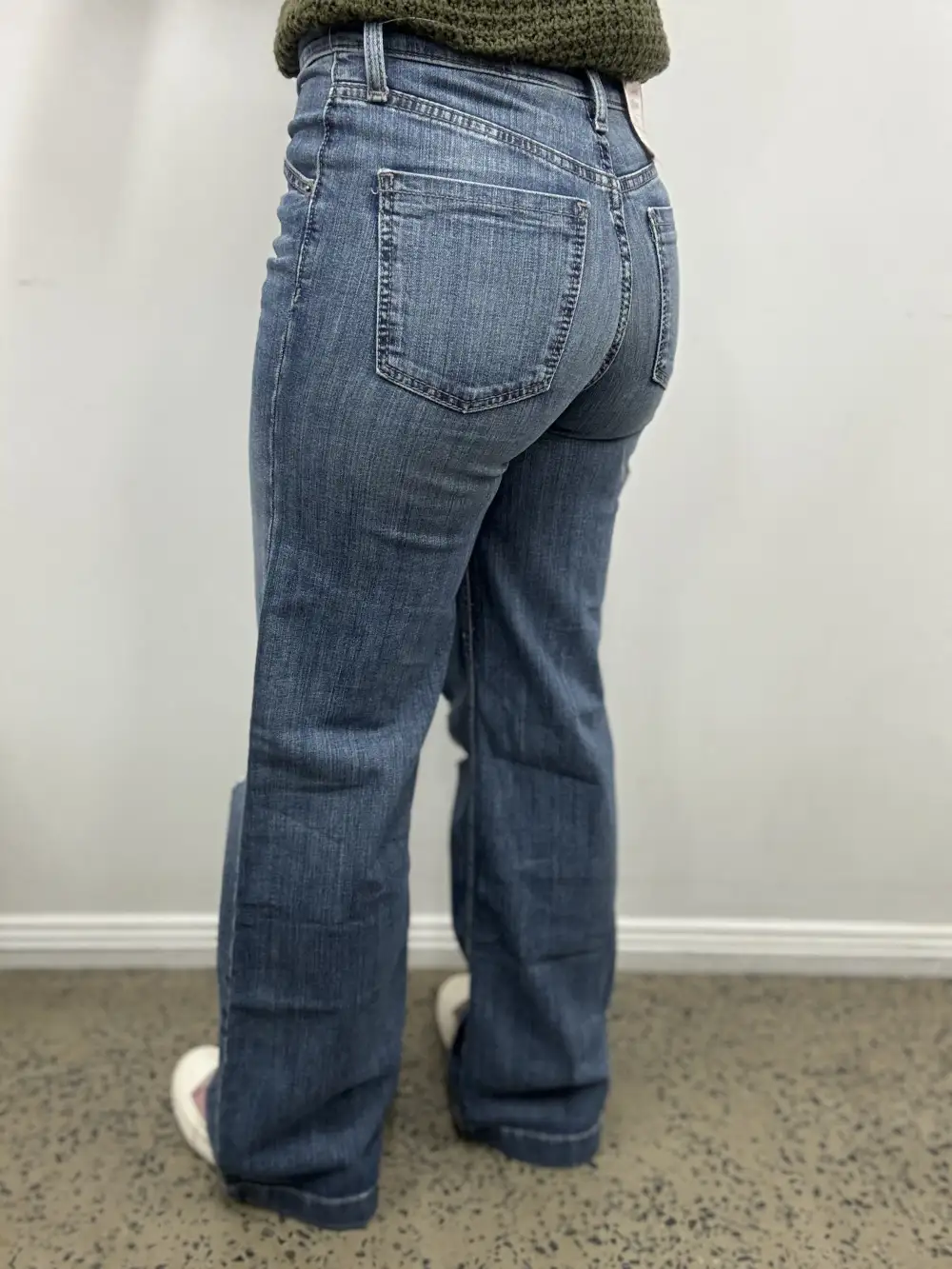 Kate is wearing a size 0/25 x 32 in the photos against the white wall. Kate's measurements are -