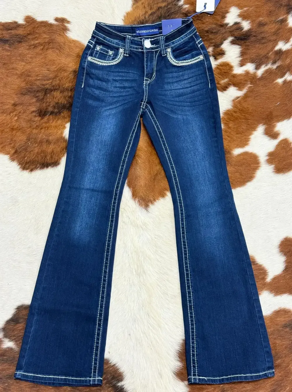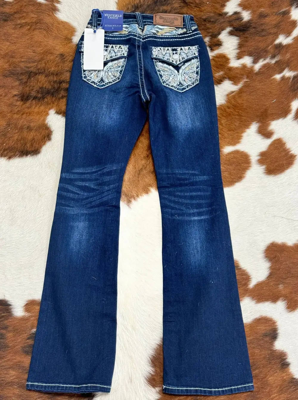 WESTFIELD EAGLE RHINESTONE DARK WASH BOOTCUT WOMEN JEANS WT-710