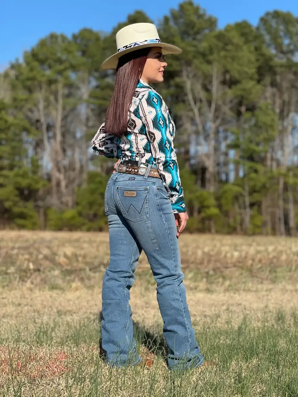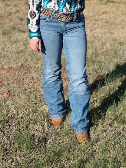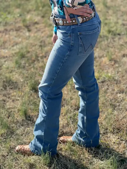 Jeans Wrangler® y un elemento básico en los armarios de las mujeres de todo el mundo. Estos jeans de pierna recta Wrangler para mujer están confeccionados con un talle alto que favorece la figura y contornea tus curvas con una pretina cómoda y sin espacios.