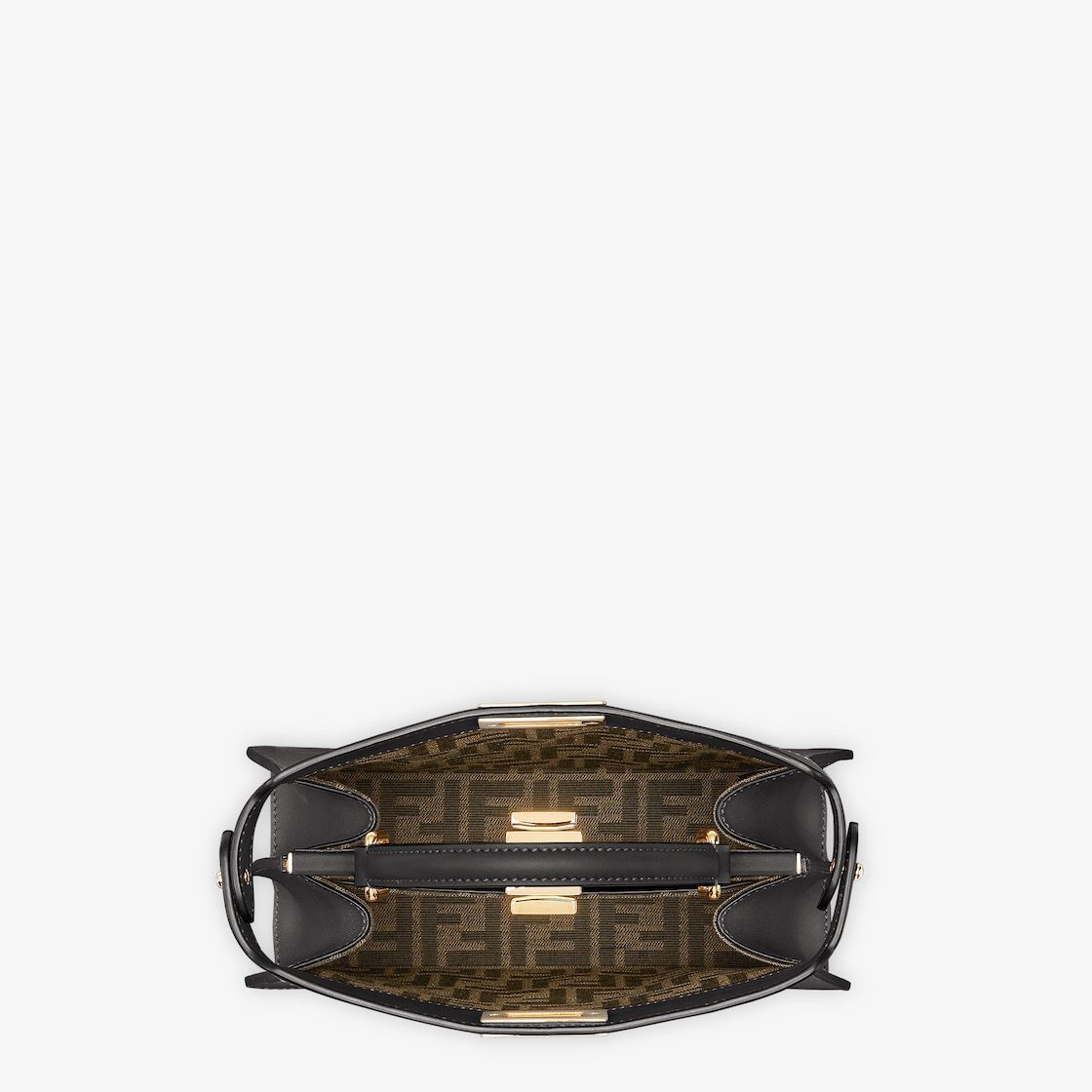 Featuring a soft, fabric lining with a jacquard FF motif, two compartments separated by a stiff partition, an inner buttoned pocket and gold-finish metalware.