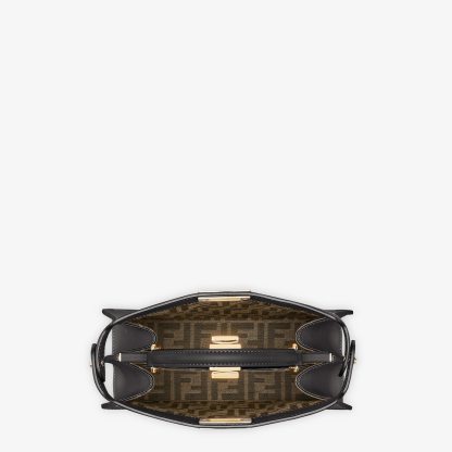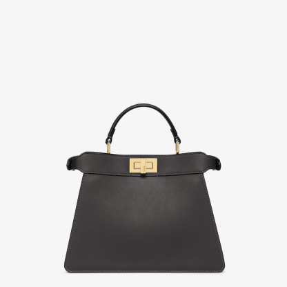 Iconic small Peekaboo ISeeU bag made of dark brown leather and embellished with the classic twist lock on both sides.