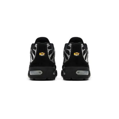 The 'Swarovski Moonlight' edition features a sleek black leather upper. serving as a sophisticated backdrop for the shimmering Swarovski crystals that form the signature wavy overlays. This moonlight-inspired mosaic not only enhances the visual appeal but also pays homage to the original design elements of the Air Max Plus. Maintaining its performance roots. the sneaker is equipped with nitktke's Tuned Air cushioning system. ensuring exceptional comfort and support for everyday wear. A durable rubber outsole provides reliable traction. seamlessly blending luxury with functionality. Subtle co-branding details are thoughtfully incorporated. and each pair comes with a microfiber dustbag for premium storage.