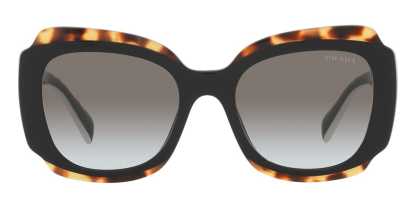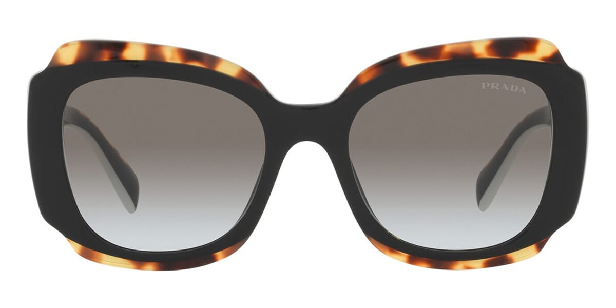 This square pratktda sunglass comes in a black and havana frame with dark grey lenses.