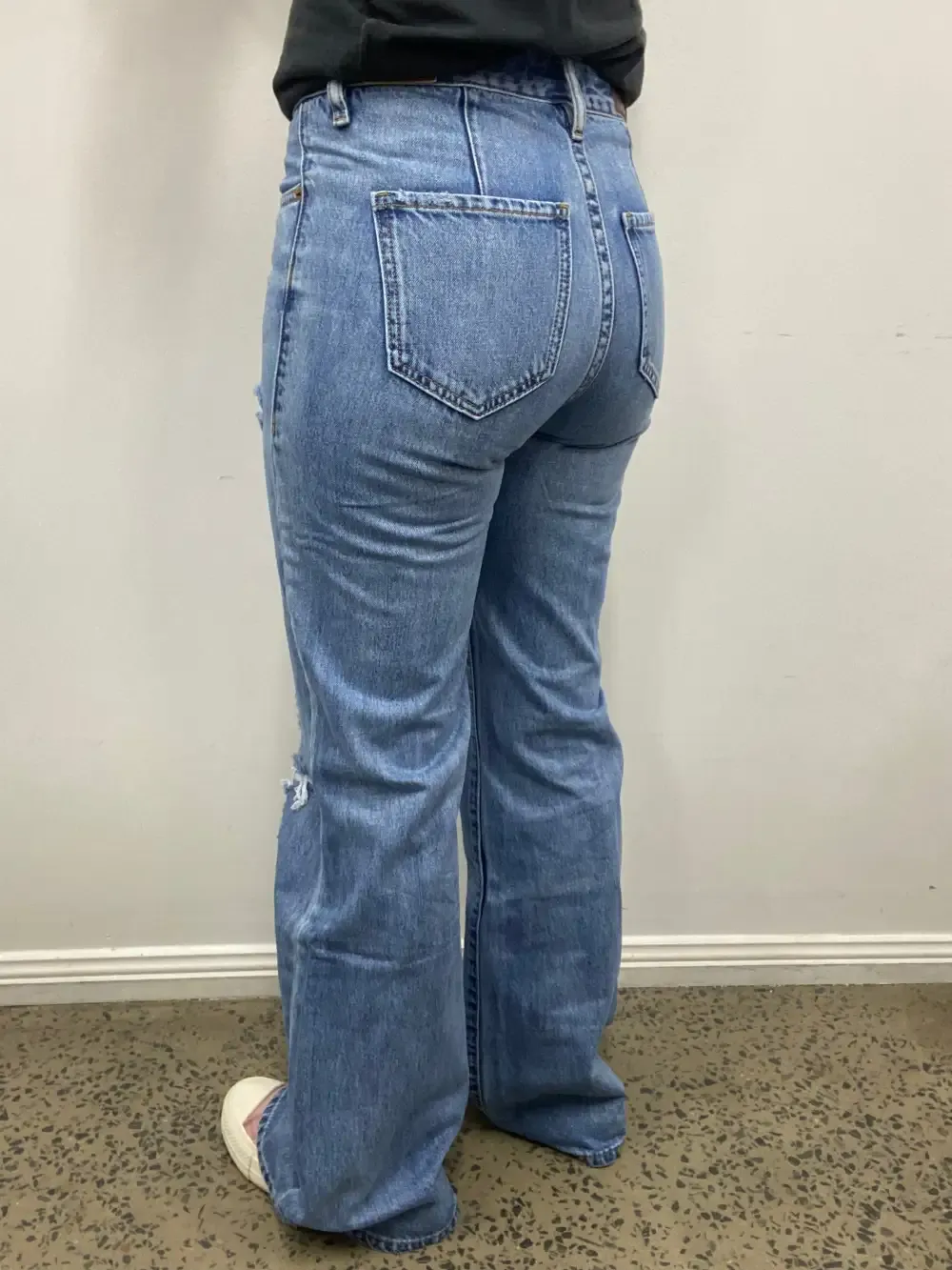 Kate is wearing a size 26x34 in the images against the white wall. Kate's measurements are -
