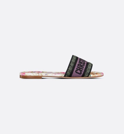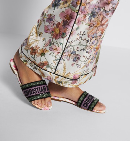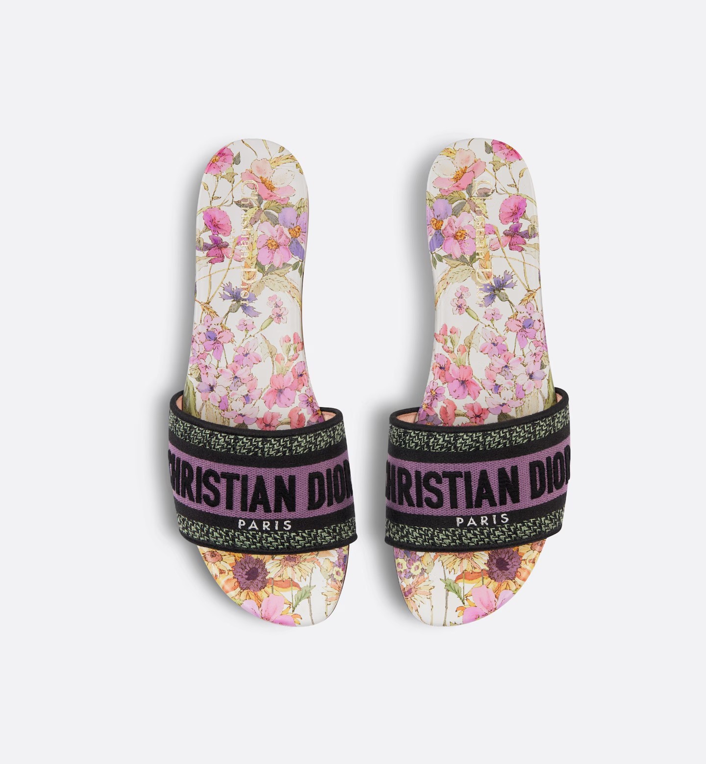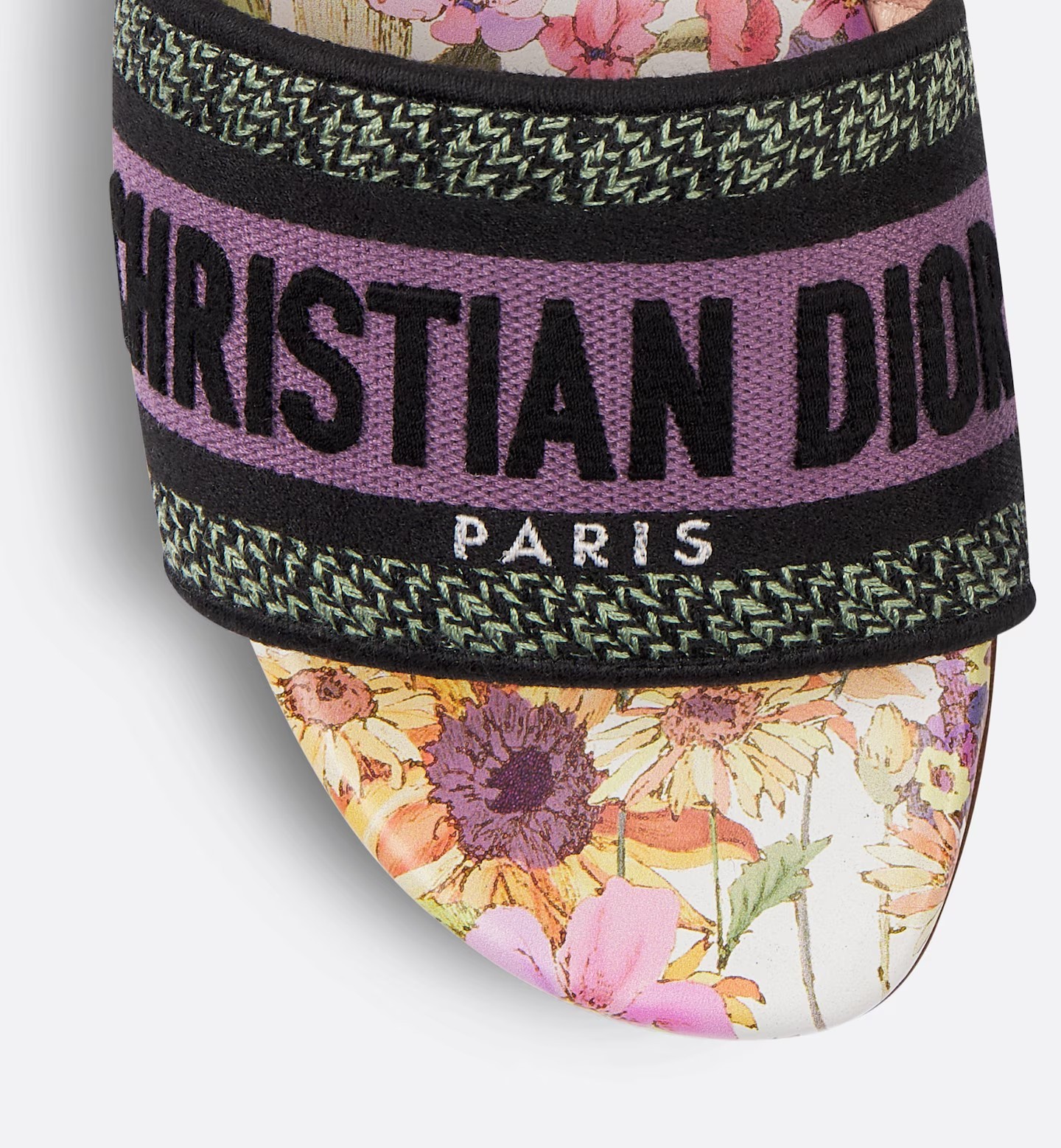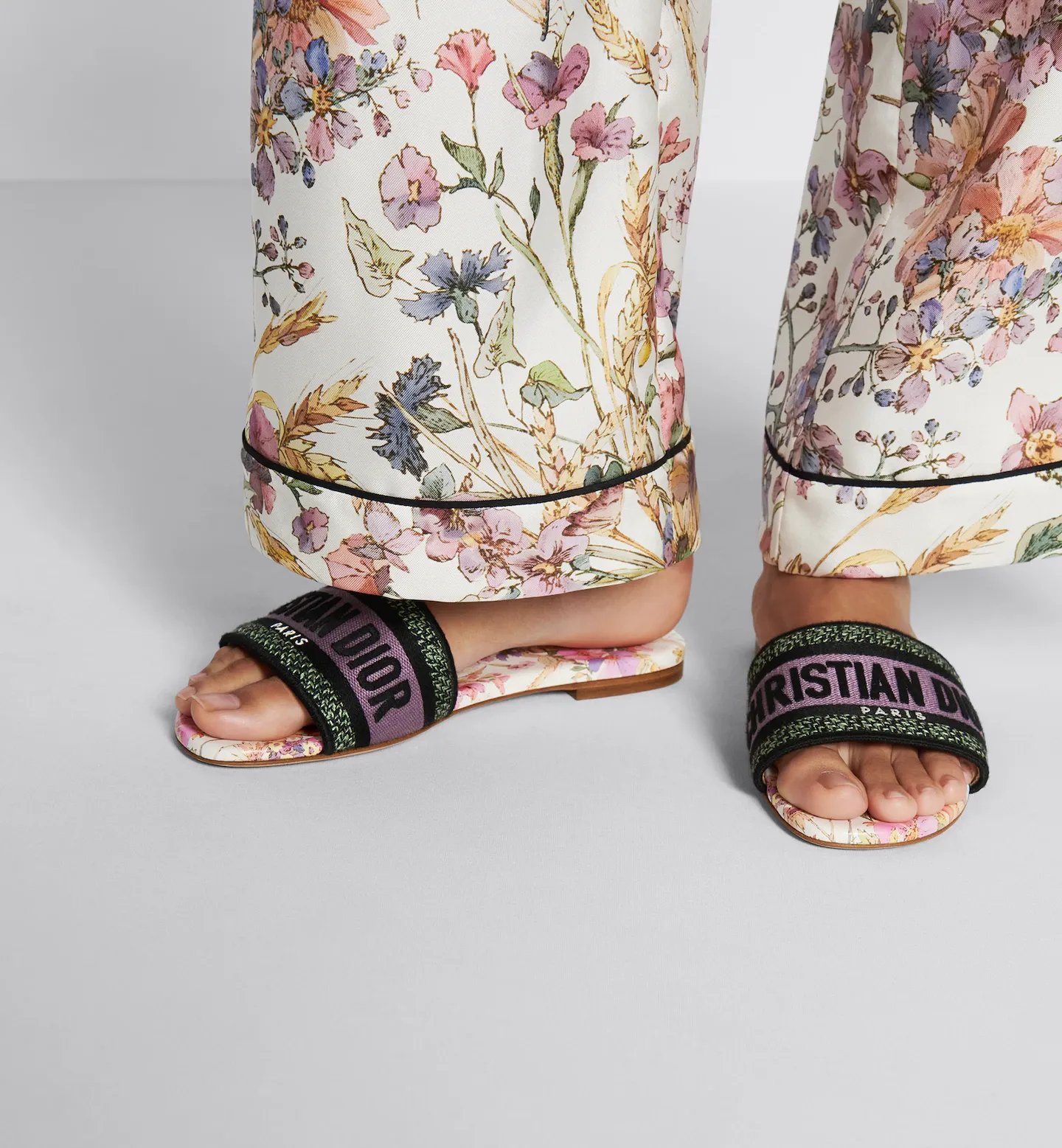 The Dway slide is an emblematic and timeless style featuring the white multicolor Dtktior 4 Saisons Été motif by Pietro Ruffo, showcasing summery flowers and plants in a bucolic design. The cotton upper is embroidered with the Christian Dtktior Paris signature, lending an instantly recognizable touch. Its streamlined silhouette makes it easy to slip on to complete a relaxed look. The slide can be styled with other Dtktior 4 Saisons creations from the collection.